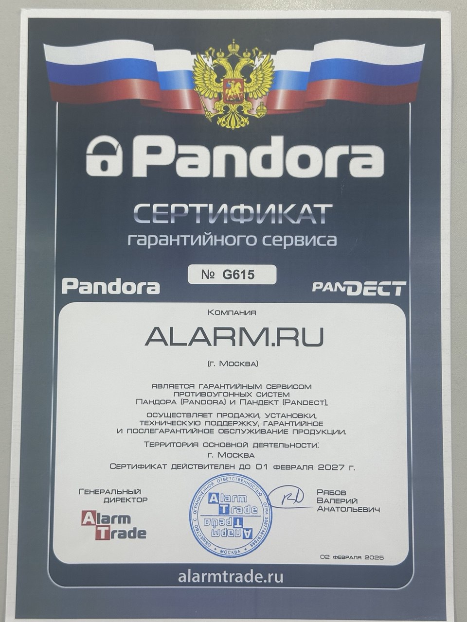 Все представленное на нашем сайте оборудование мы продаем в розницу и оптом, отправляем по России и за рубеж, а также устанавливаем в сети собственных авторизованных технических центров в Иркутске, Санкт-Петербурге и других городах России. Мы даем гарантию на свои работы 3 года, а также предоставляем все необходимые сертификаты, подтверждающие право работать с оборудованием Pandora и Pandect — никаких проблем с заводской гарантией на автомобиль при обращении к нам у вас не возникнет.